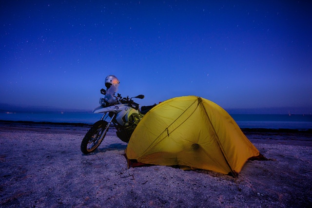 Just me and my bike and my tent under the stars. At Bahia Inglesa.